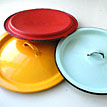 These lid are enamelled. The enamelling protects against corrosion, even if it is damaged. This is caused by a pasivation of the underlying metal. |