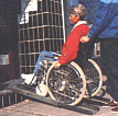 The very light telescope ramp helps people in wheelchairs climb stairs. Disabled people can carry the ramp on the wheelchair and can furthermore place and remove it themselves.