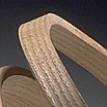 Precompressed wood can be obtained basically from any type of wood, through a method that forms it 3-dimensionally, giving furniture designers new possibilities. The wood is prepared for further processing in two stages. First, the wood's fibres are mollified by means of steam, rendering the wood plastic. Then, a compression process folds the fibres like an accordion and shortens the wood (20%). After the compression, the wood recontracts to 95% of its original length. At this stage, the wood is extremely easy to form during several hours, with the use of simple or even no tools at all. When fixed in a form, the wood can be dried, re-establishing its former strength, impact resistance and flexibility. |