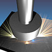 EDM can only be used on electrical conducting materials like metal. Sparks causes localized temperatures that melt the material and the waste material is then transported away with a dielectric fluid. EDM tools are often made from graphite. |
