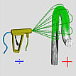 The substrate is connected to the ground. The paint particles are negativly charged (while atomized or after having been atomized by the air or airless methods) through a connection of the spraying-gun to a generator. The difference in charge leads the particles towards the substrate to obtain the coating. Very expensive equipment. Not suitable for all kind of paints. |