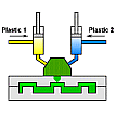 Two or more kinds of fluid plastics are mixed, often without being heated, and then injected into a mould where the mixture solidifies. Stiffness of the parts produced can be increased using different kinds of fibre reinforcement. |
