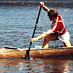 The canoe was used to win the 1990's marathon single canoe world championship in Nottingham. It weighs only 6,5 kg even though it is 5,2 m long and 0,75 m wide. The canoe is made of an advanced sandwich of composite plastic: a carbon/kevlar reinforced epoxy on a core of PVC-foam. |