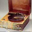 The box housing this gramophone is coated with a layer of casein formaldehyde.