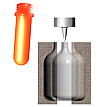 First a small part with a large wall thickness (a so-called preform) is produced by injection moulding. The preform is heated and then transferred to the blow moulding machine where it is blown into final shape. Compared to blow moulding, injection blow moulding gives better definition of details (e.g. screw thread), and a better control of the distribution of the thickness of the material. |